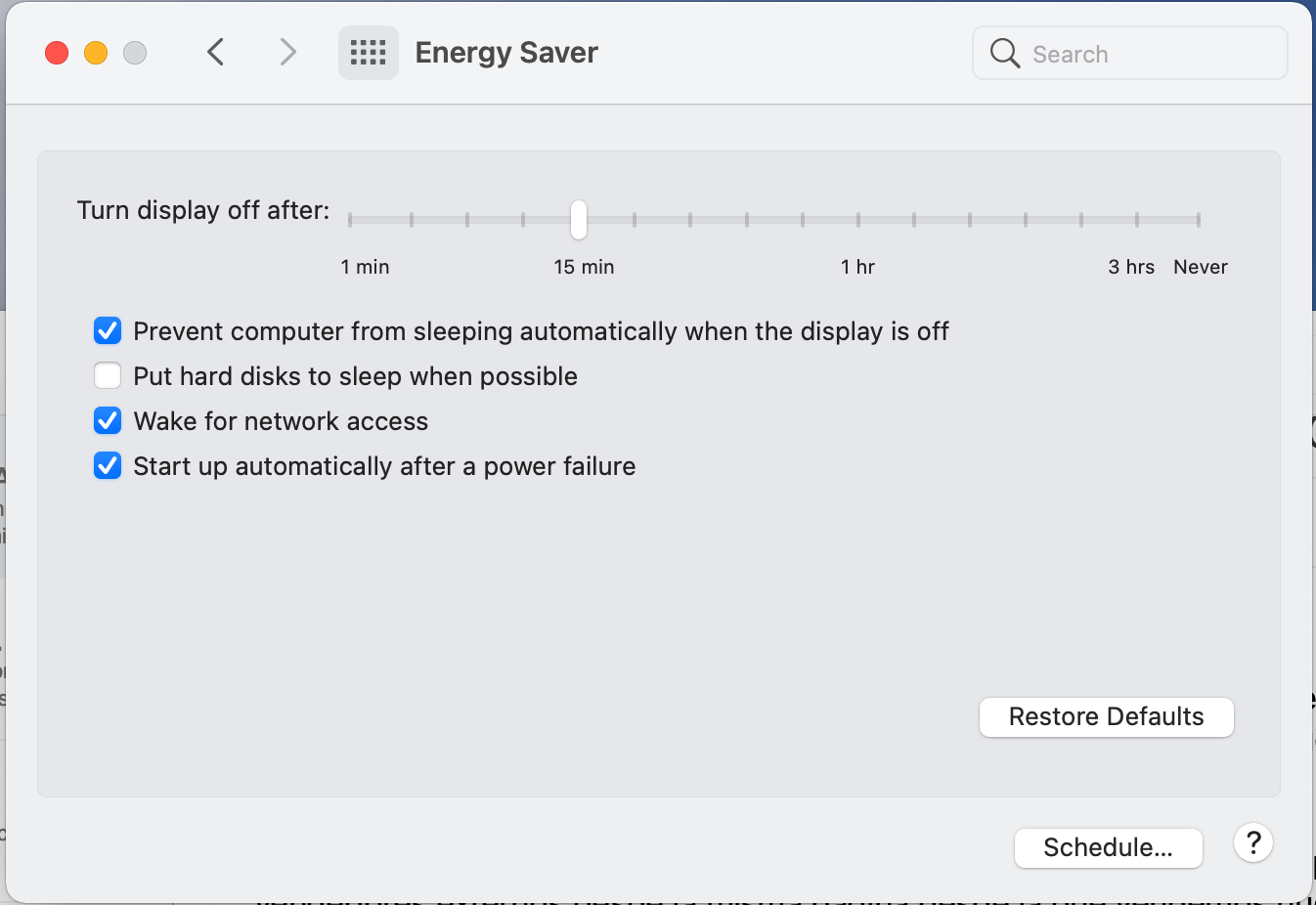 System preferences > battery > power adaptor > turn display off after > never. Click on that is showing at the top of your screen in to menu bar that allows to get turn off your mac from sleeping mode for define some amount of time. Here’s how to prevent mac from sleeping for macos monterey and big sur: